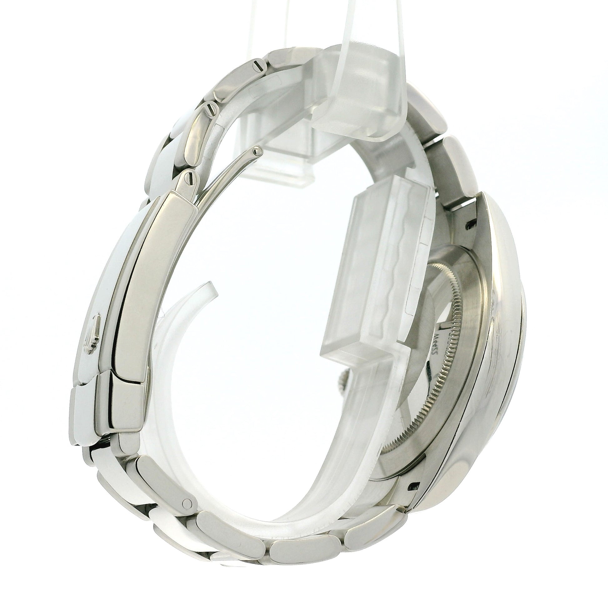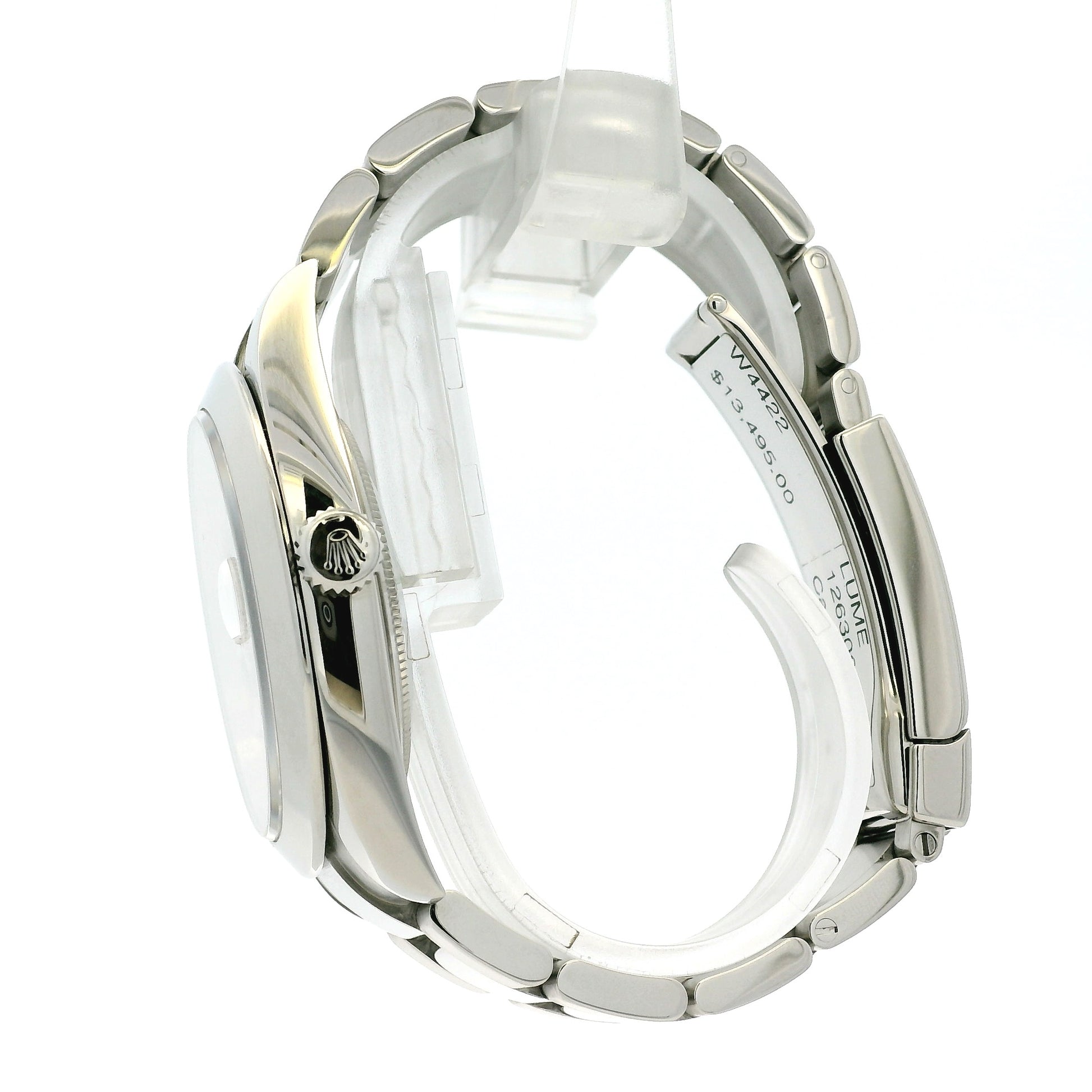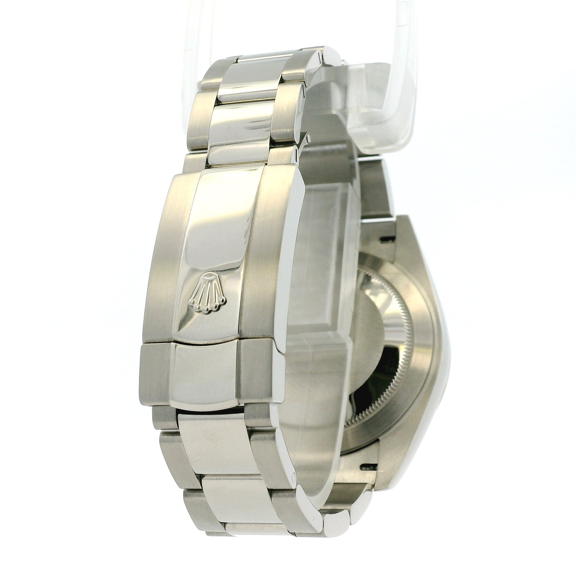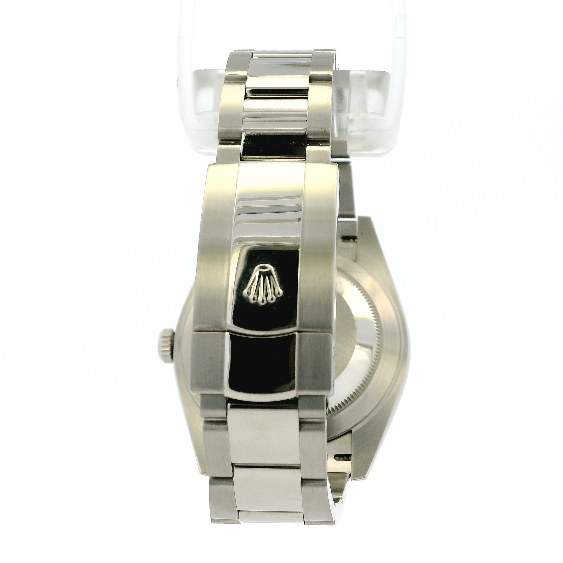 The watch showcases a refined silver stick dial with luminous hour markers and hands, paired with a smooth stainless steel bezel for a clean, versatile look. Powered by Rolex’s Caliber 3235 automatic movement, it delivers exceptional precision and an impressive approximately 70-hour power reserve.