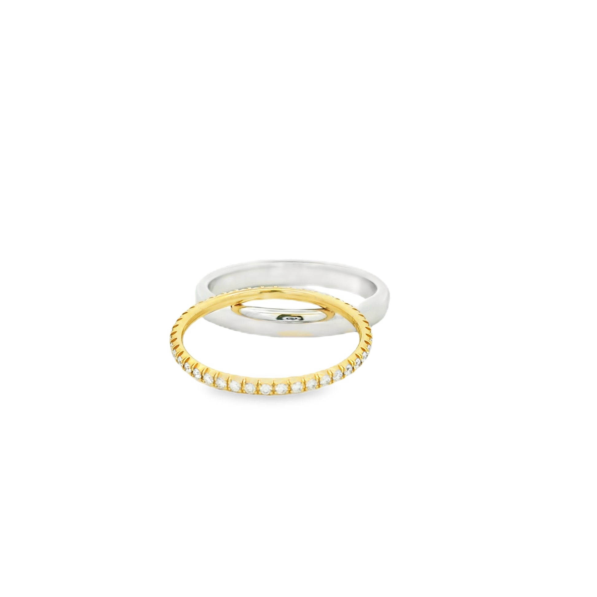 This ring set features 0.21ctw diamonds on the 18k Yellow Gold eternity band.