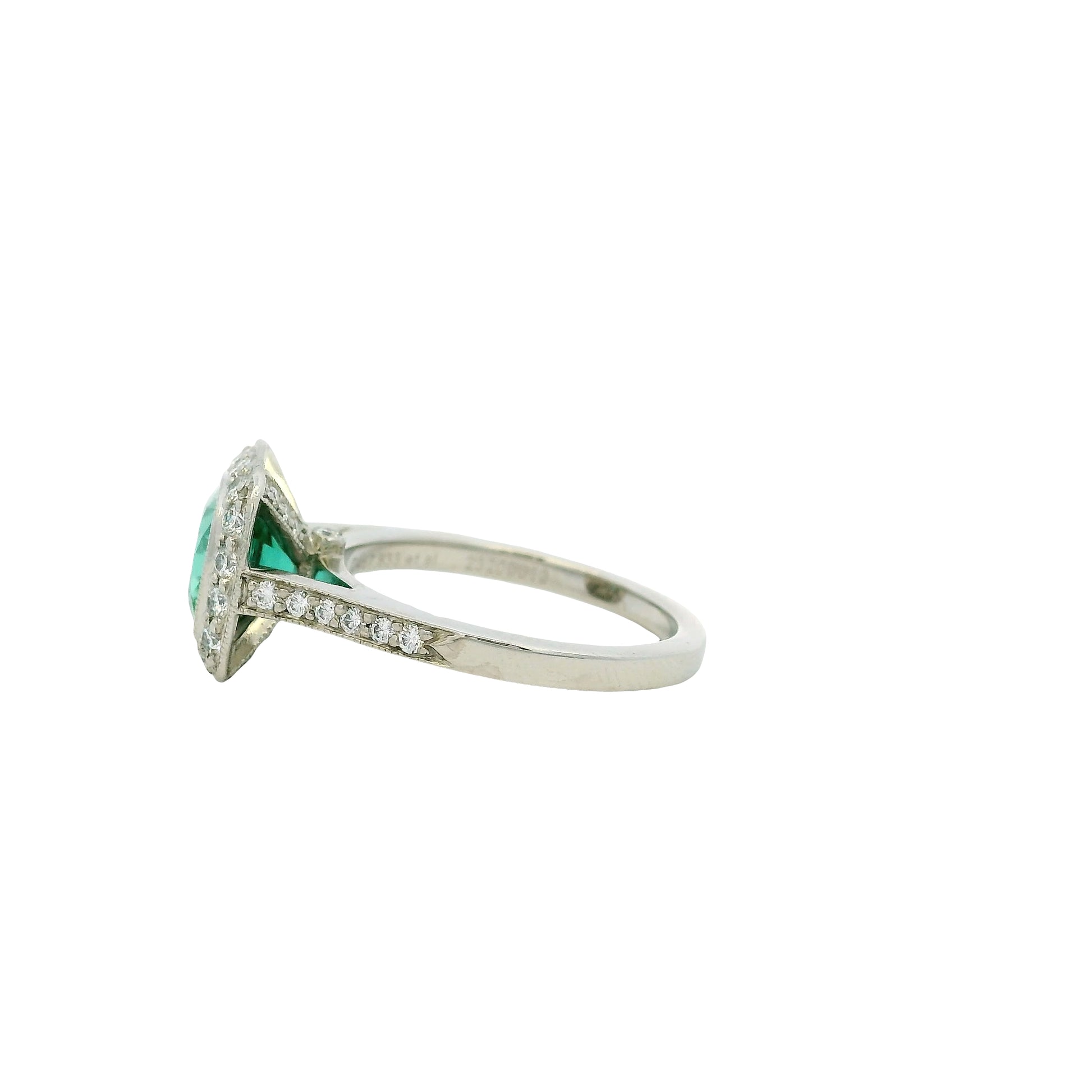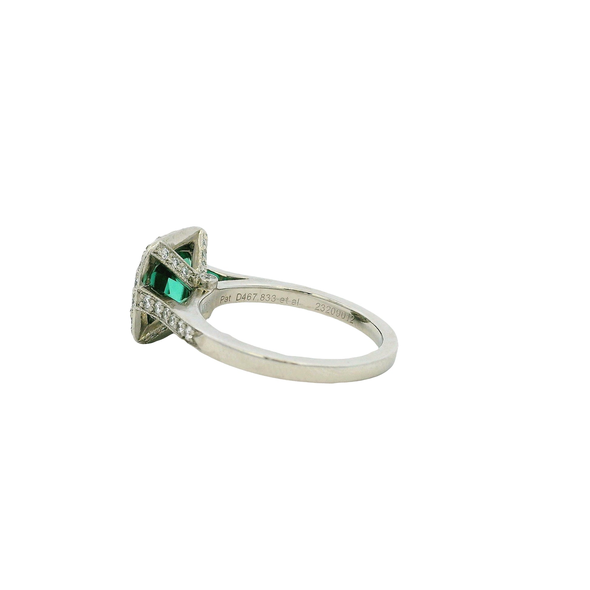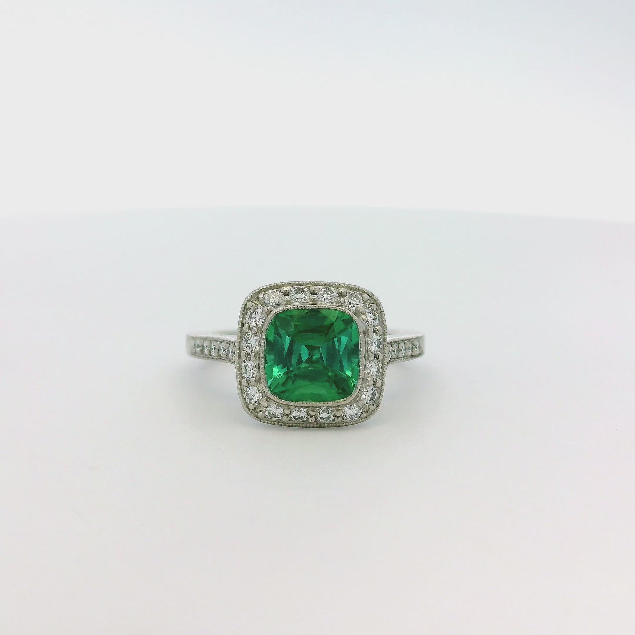 Tiffany & Co. Platinum Cushion Cut Tourmaline Green Center Gemstone with 0.38ctw Diamond Halo Ring