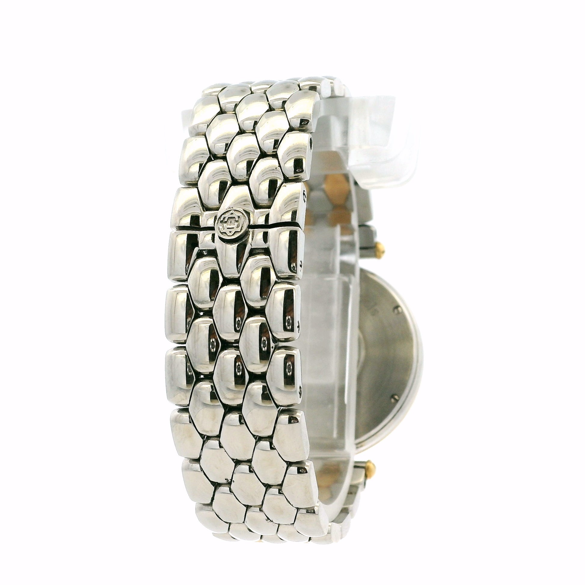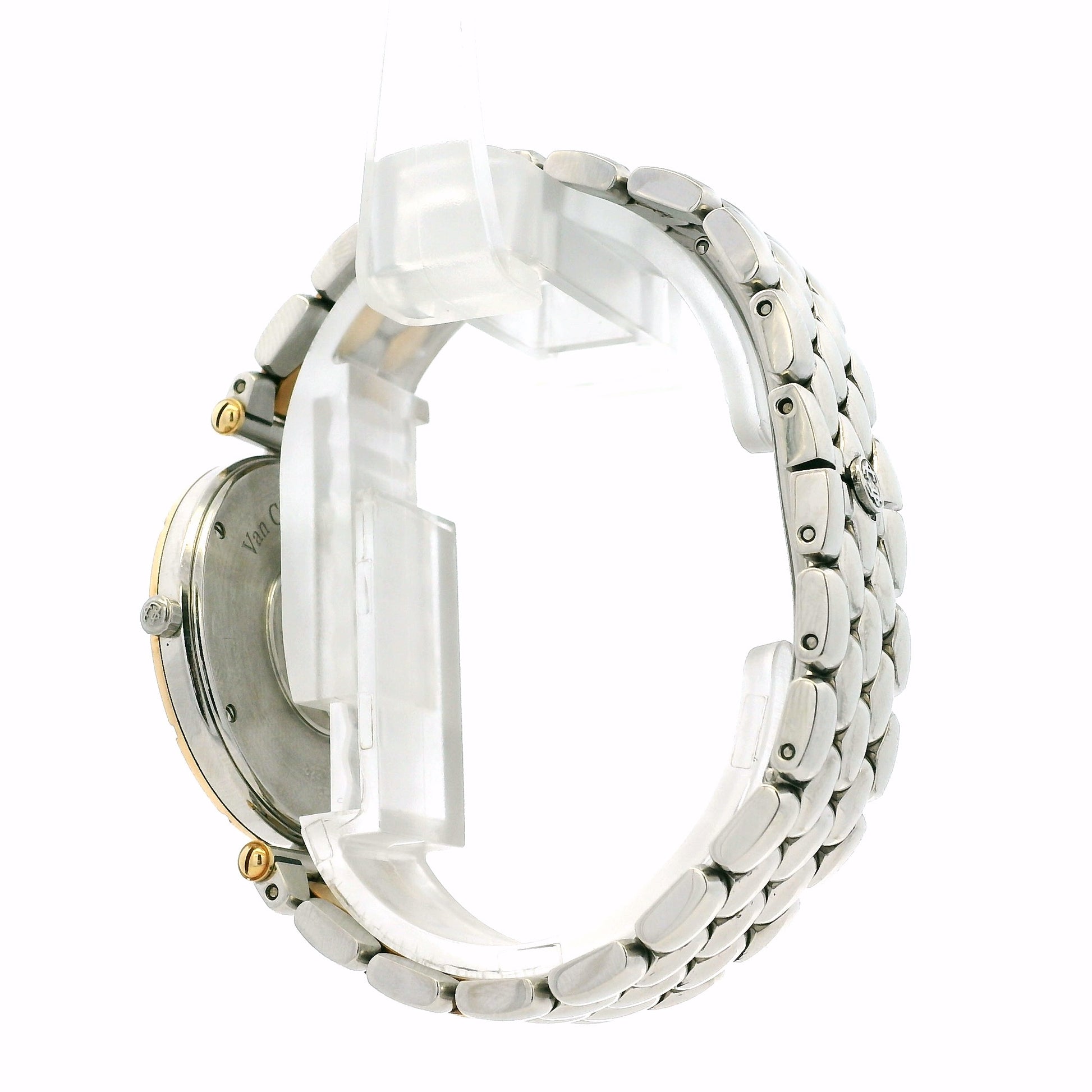 Powered by a reliable quartz movement, this Van Cleef & Arpels watch ensures precise timekeeping with low-maintenance convenience. The stainless steel and gold bracelet seamlessly complements the case, and the secure folding clasp provides comfort and confidence for everyday wear.