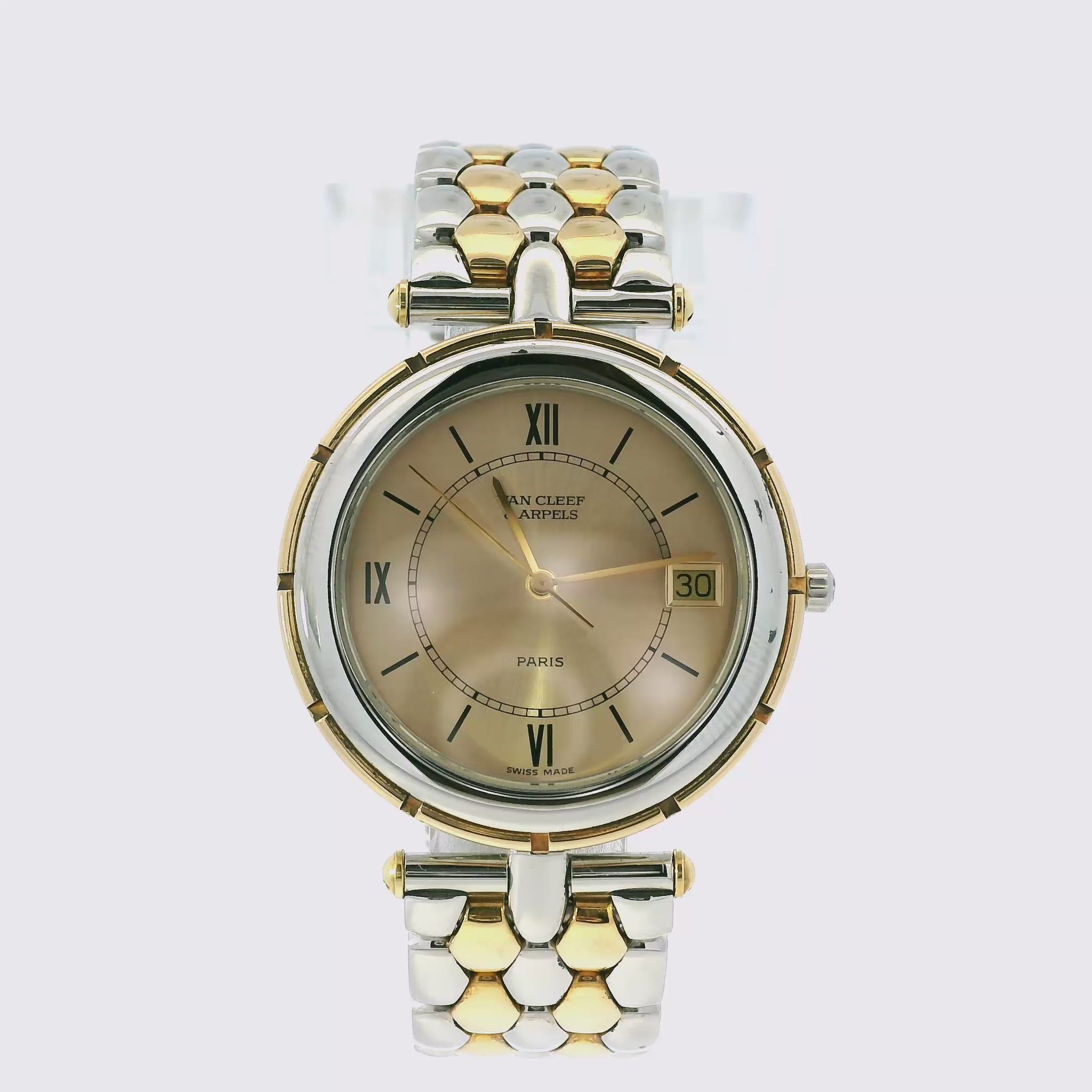 Van Cleef & Arpels 18k Yellow Gold and Stainless Steel Champagne Dial Watch