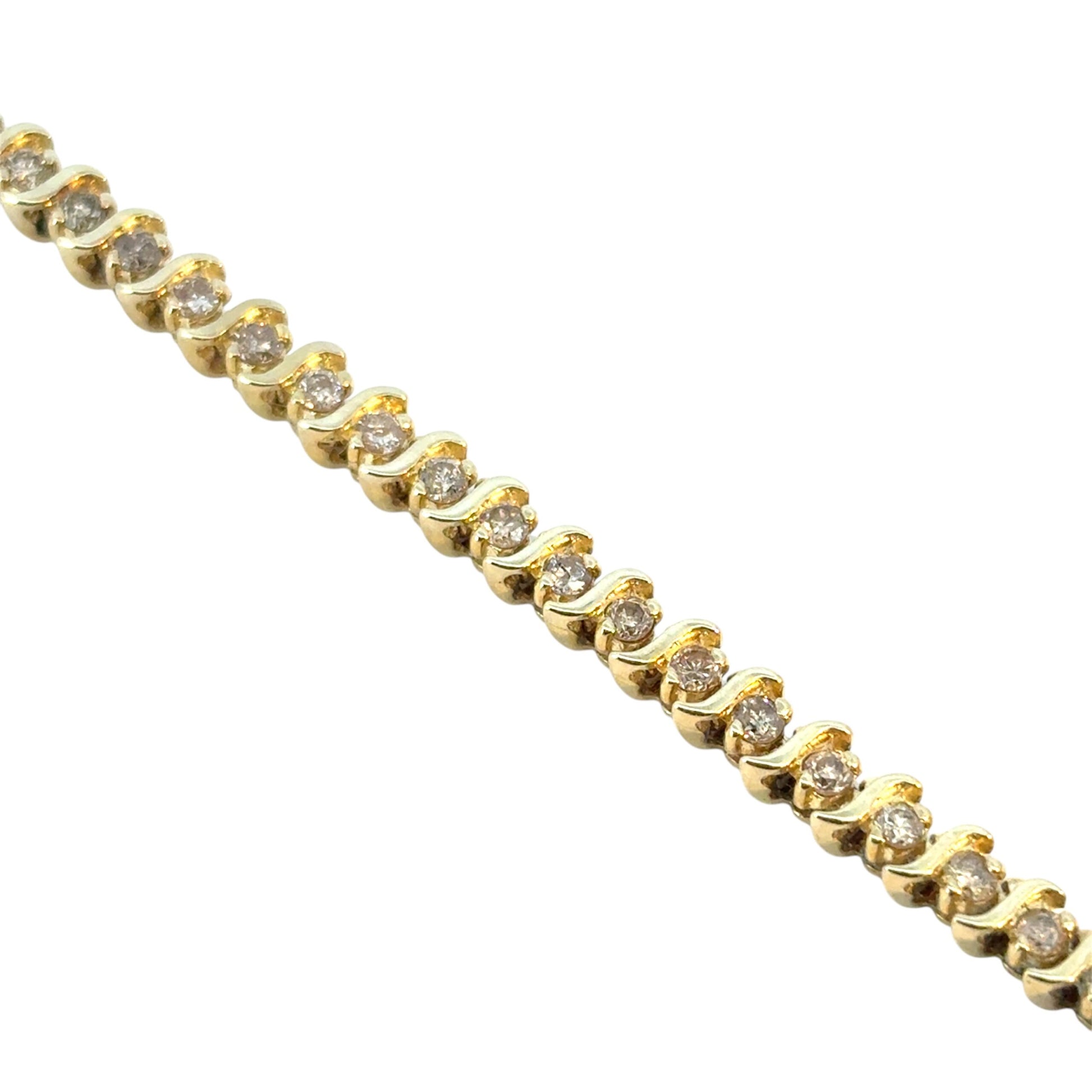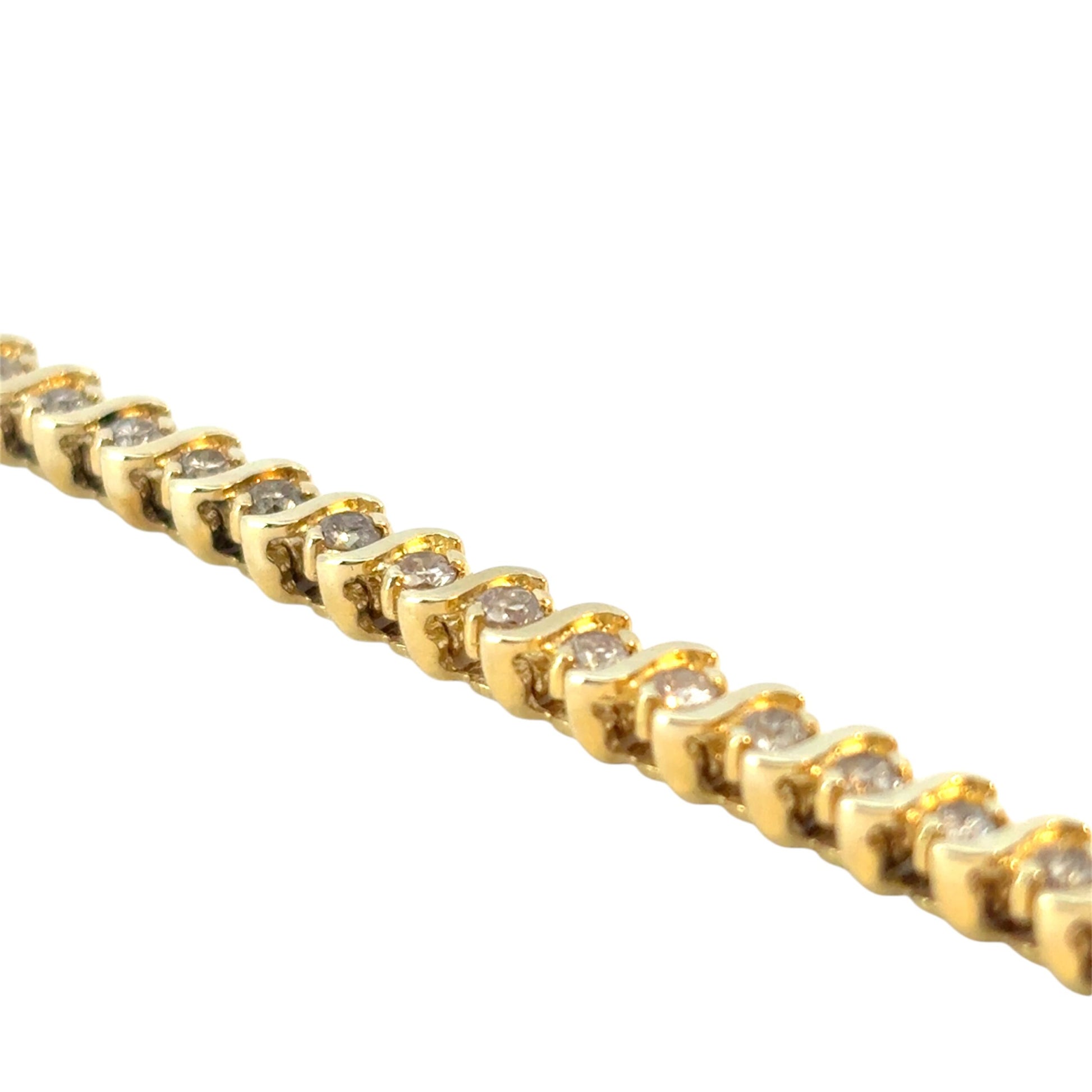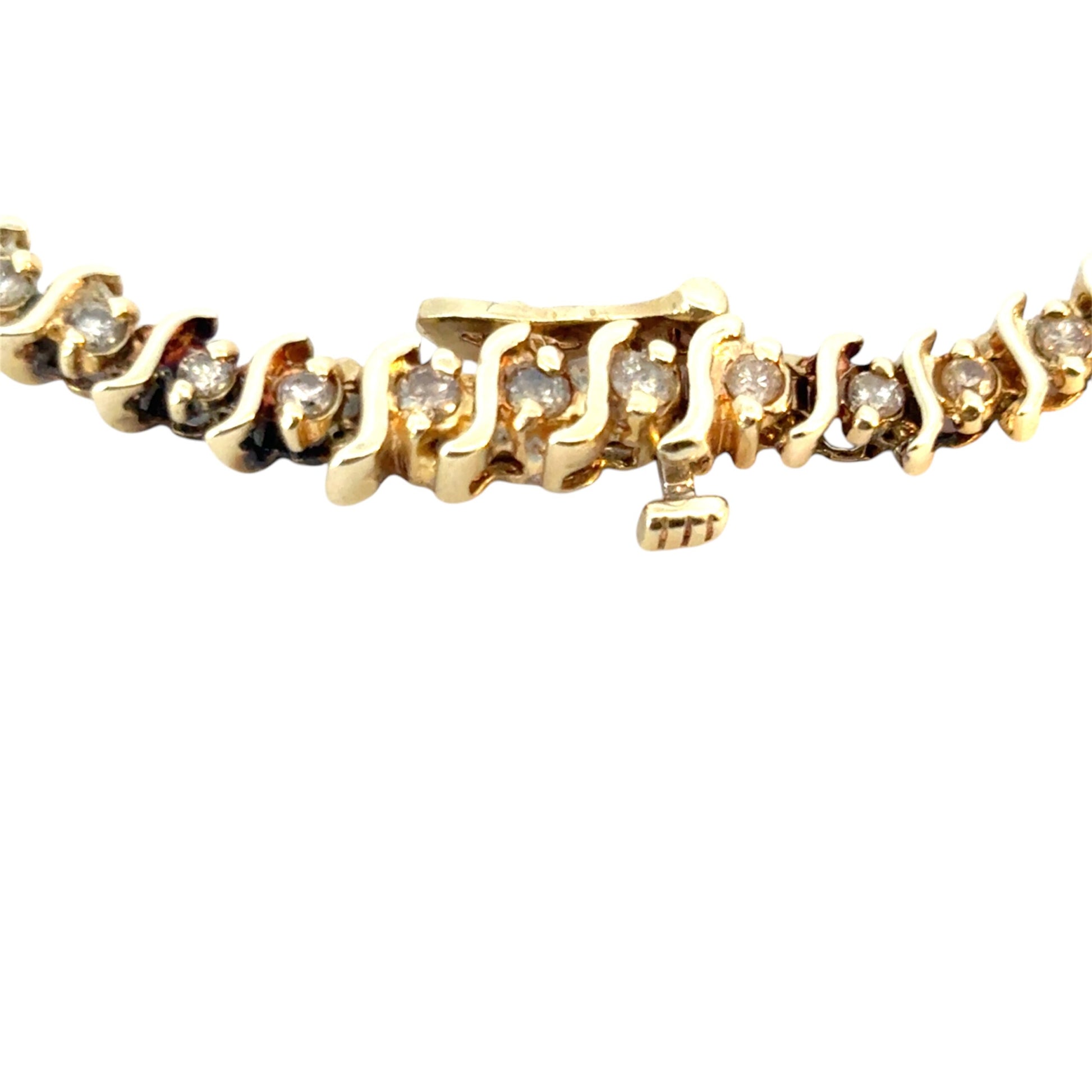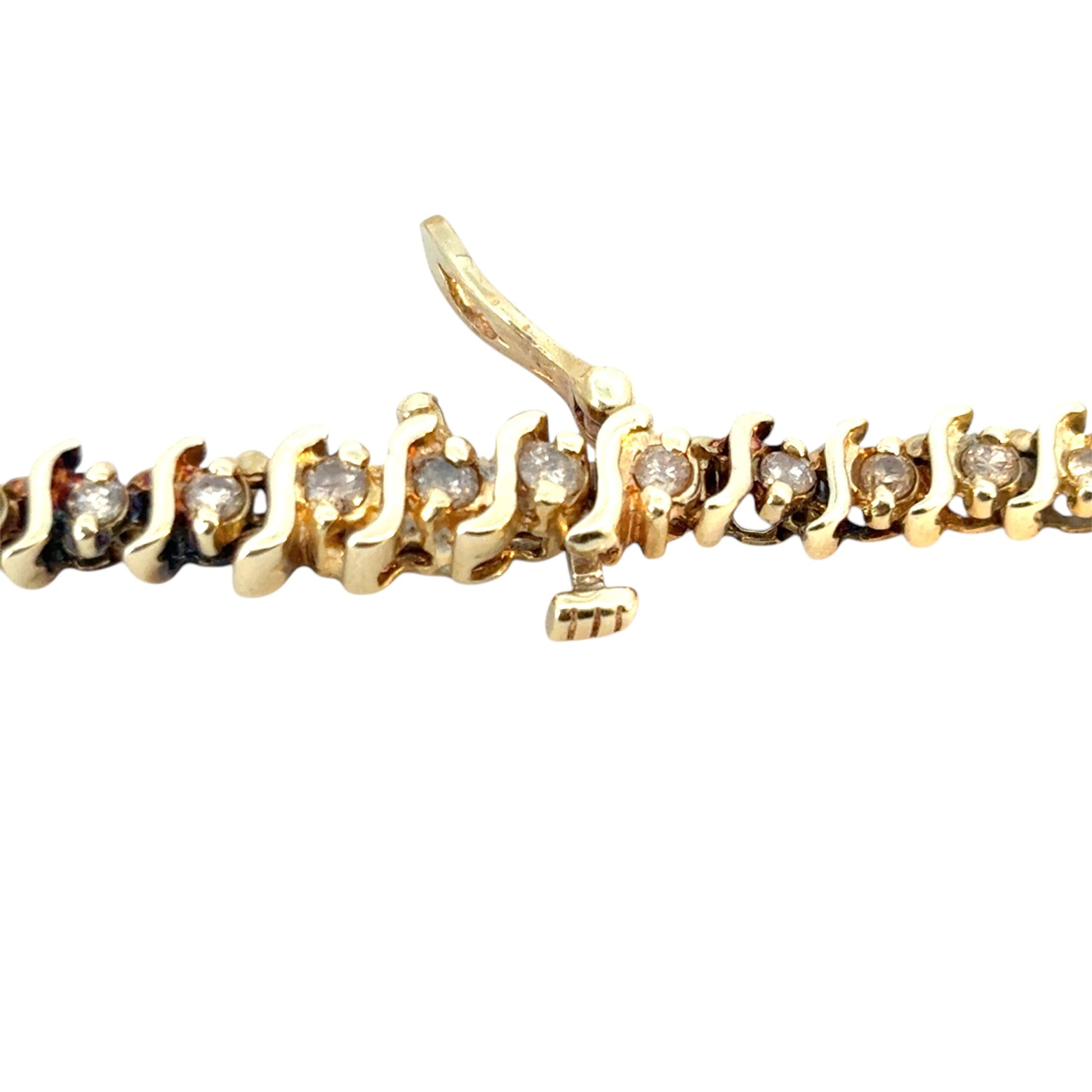 Add timeless elegance to your collection with this stunning vintage diamond tennis bracelet, crafted in rich 14k yellow gold.