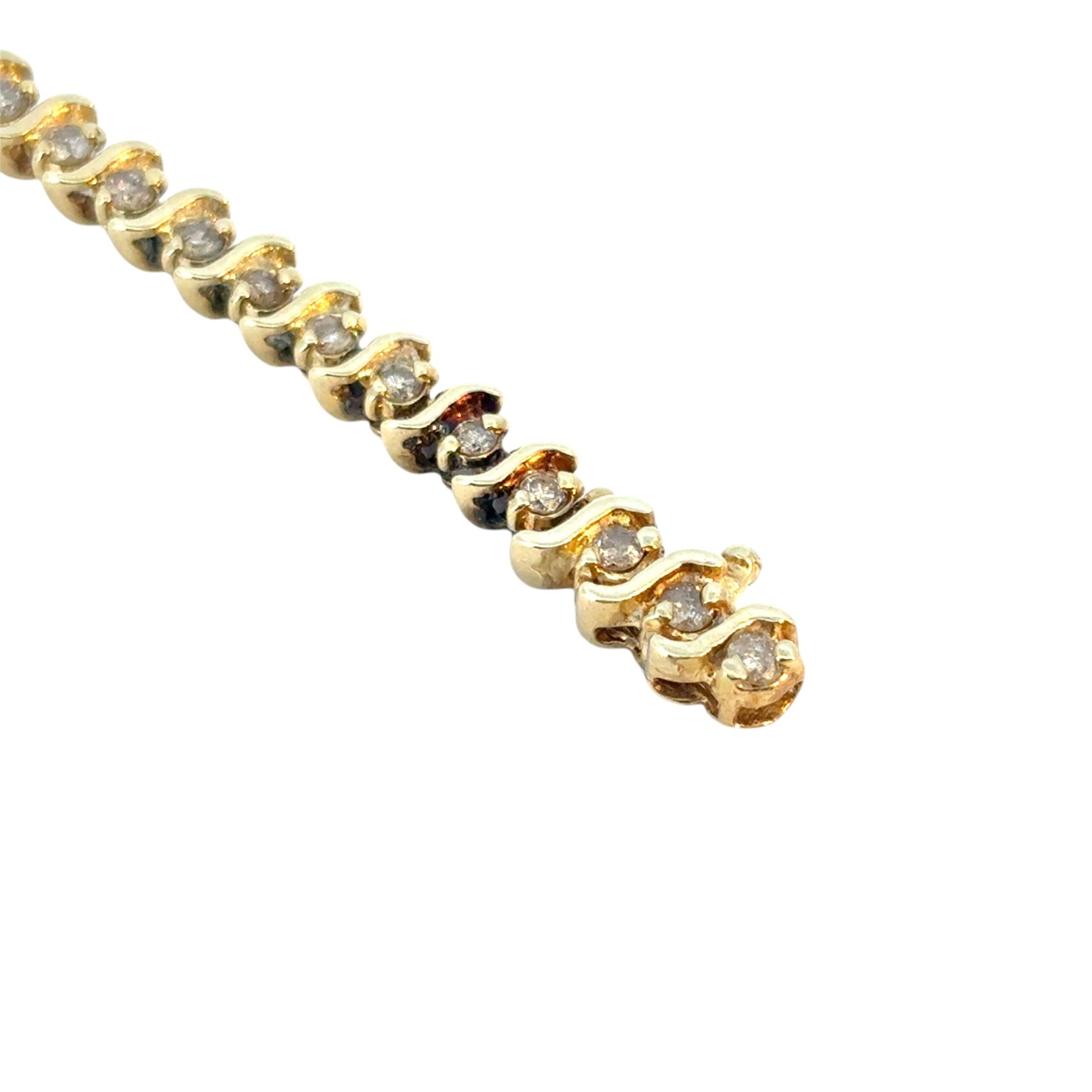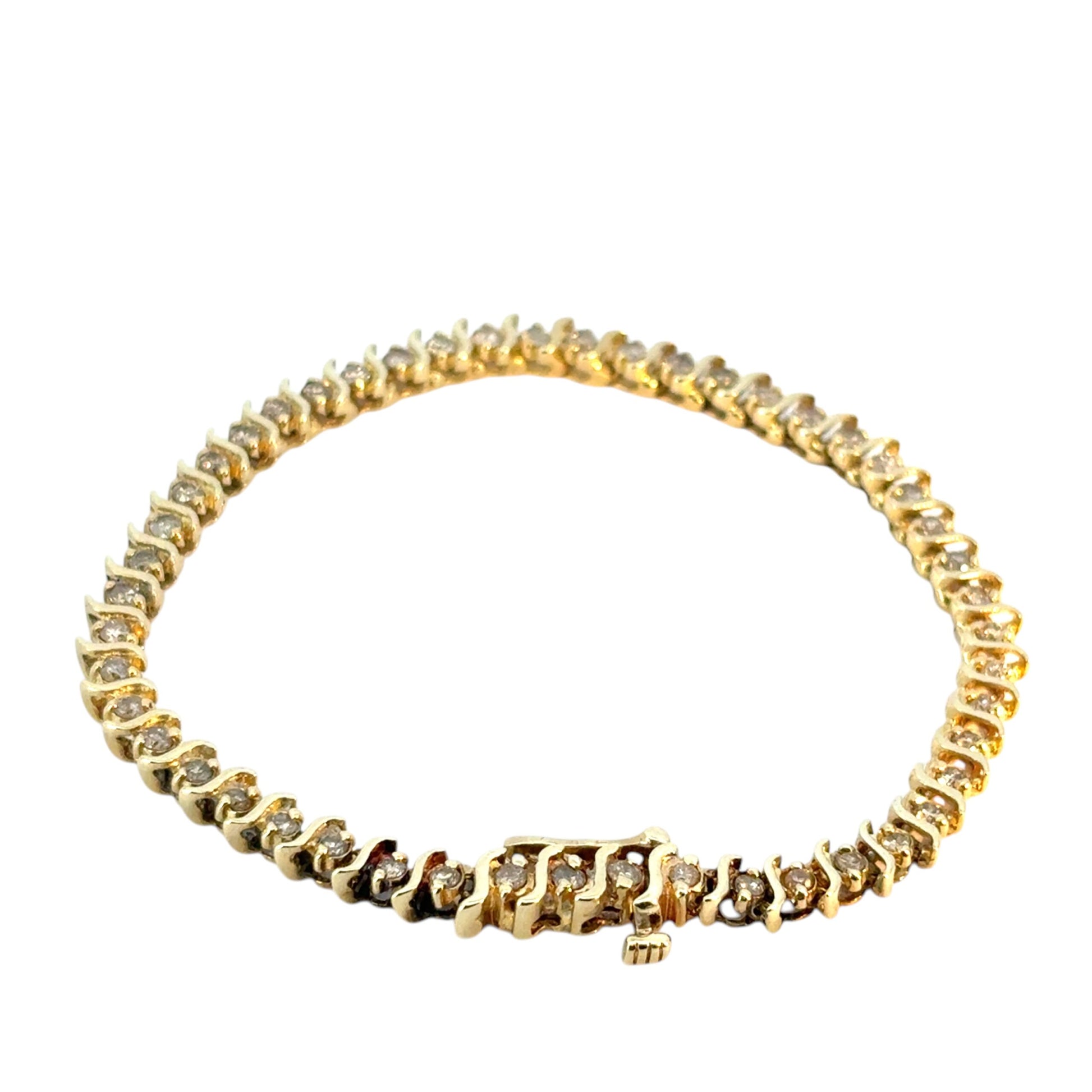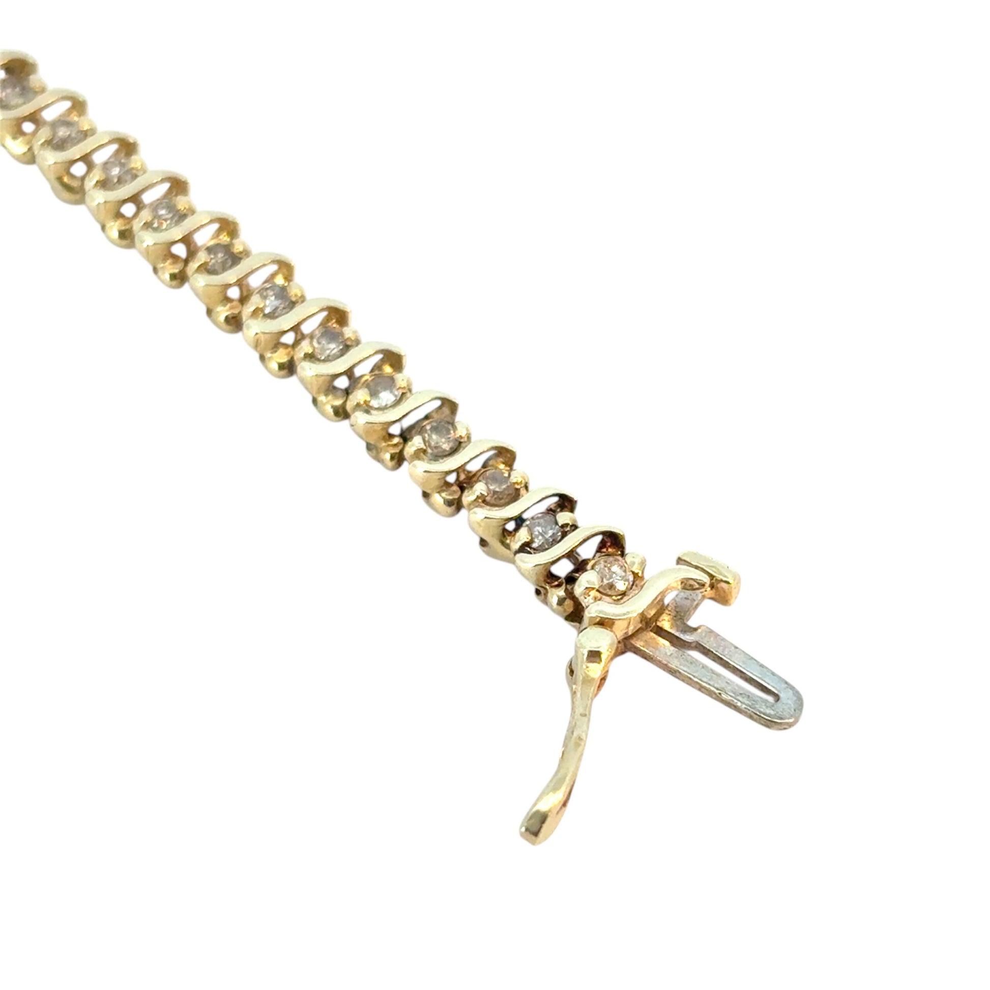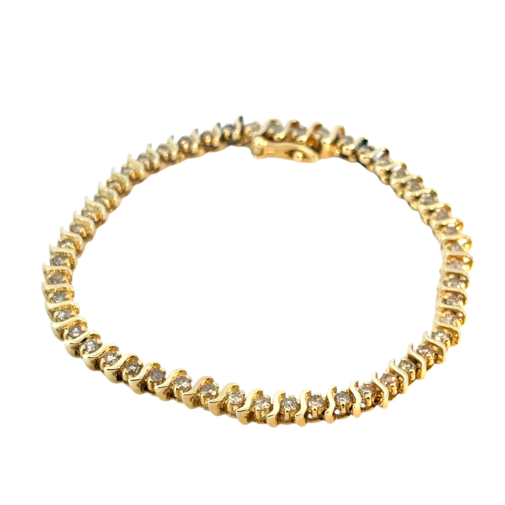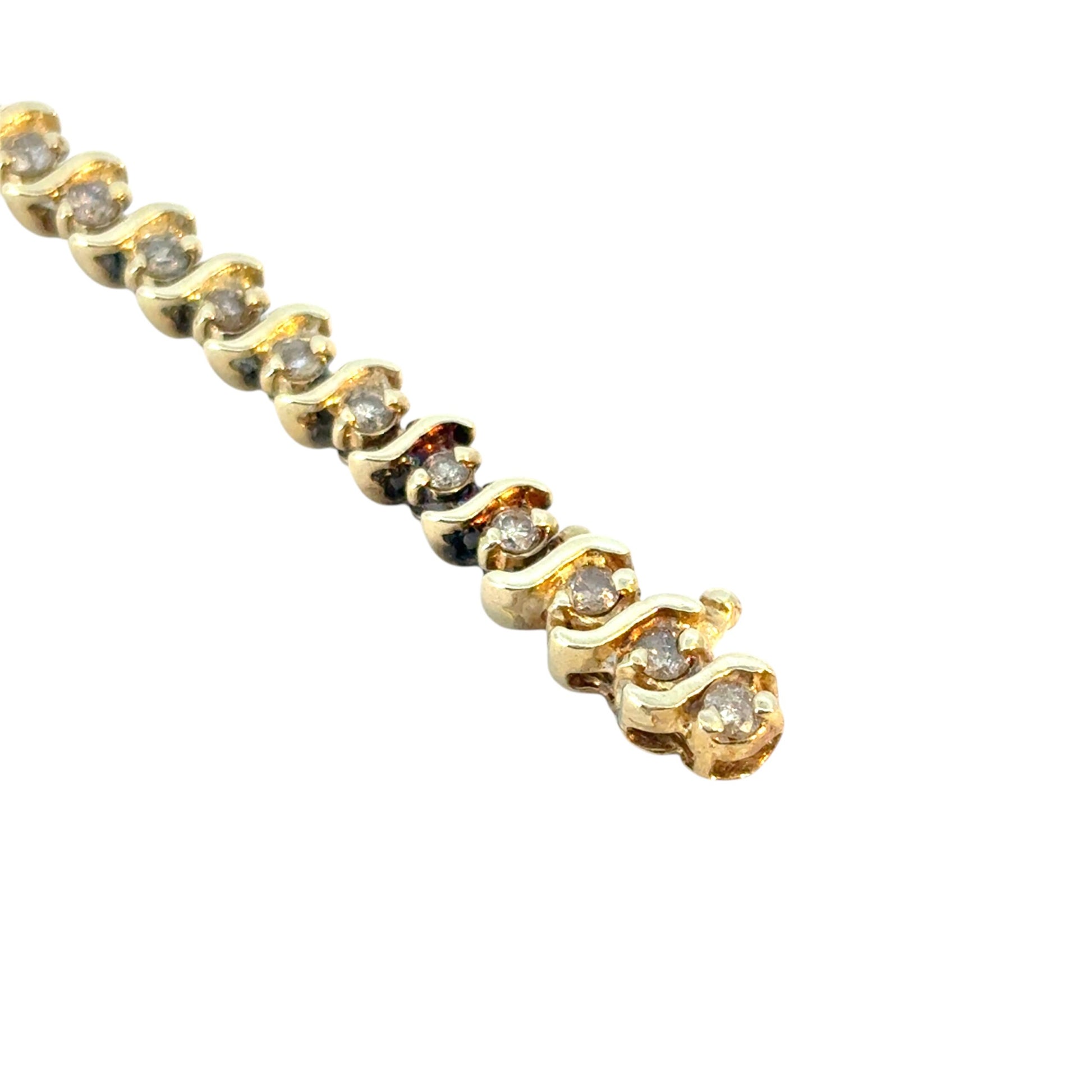 Add timeless elegance to your collection with this stunning vintage diamond tennis bracelet, crafted in rich 14k yellow gold.