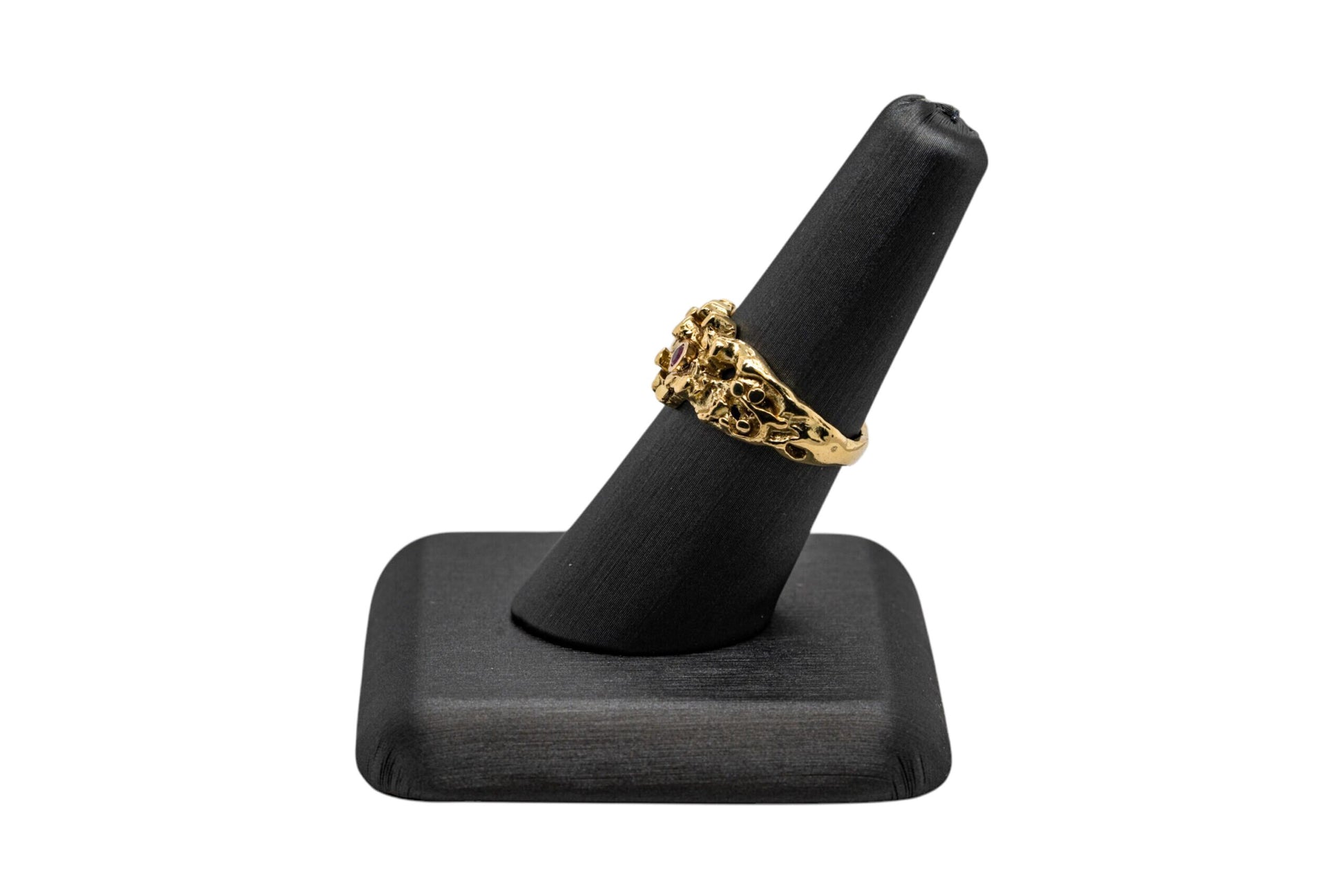 Step into timeless style with this Vintage 14k Yellow Gold Bark Finish Ring, a unique statement piece that fuses natural texture with vivid color.