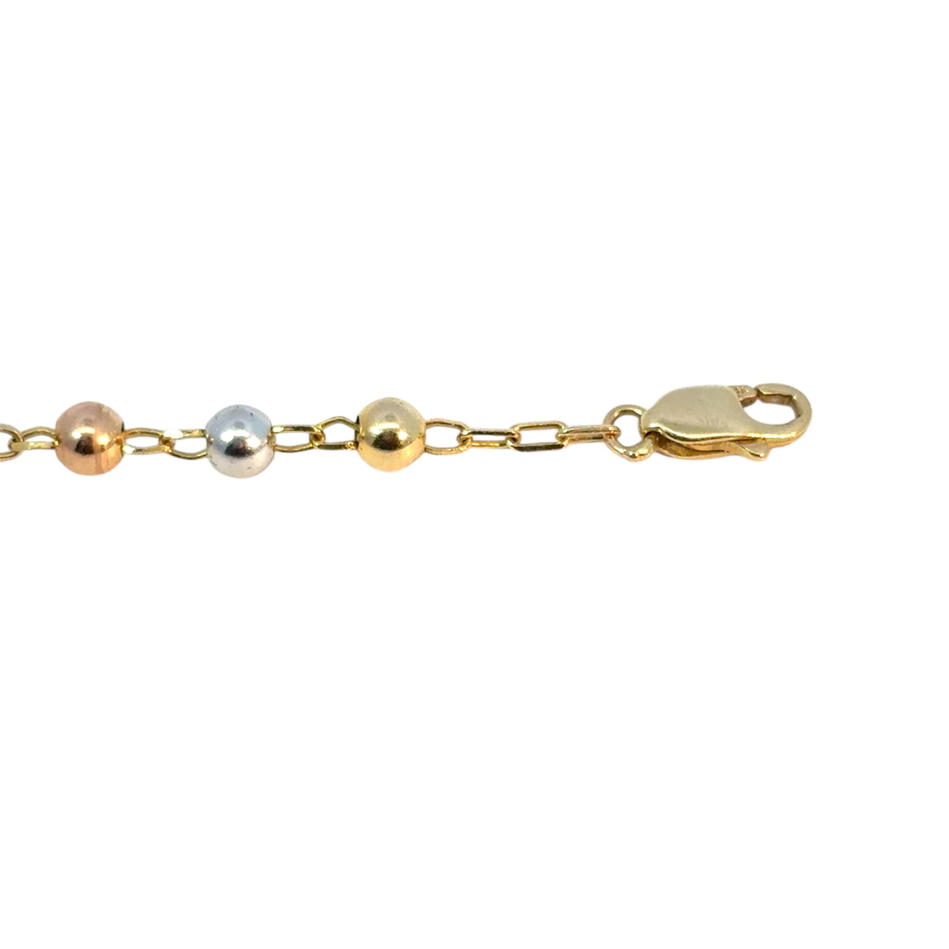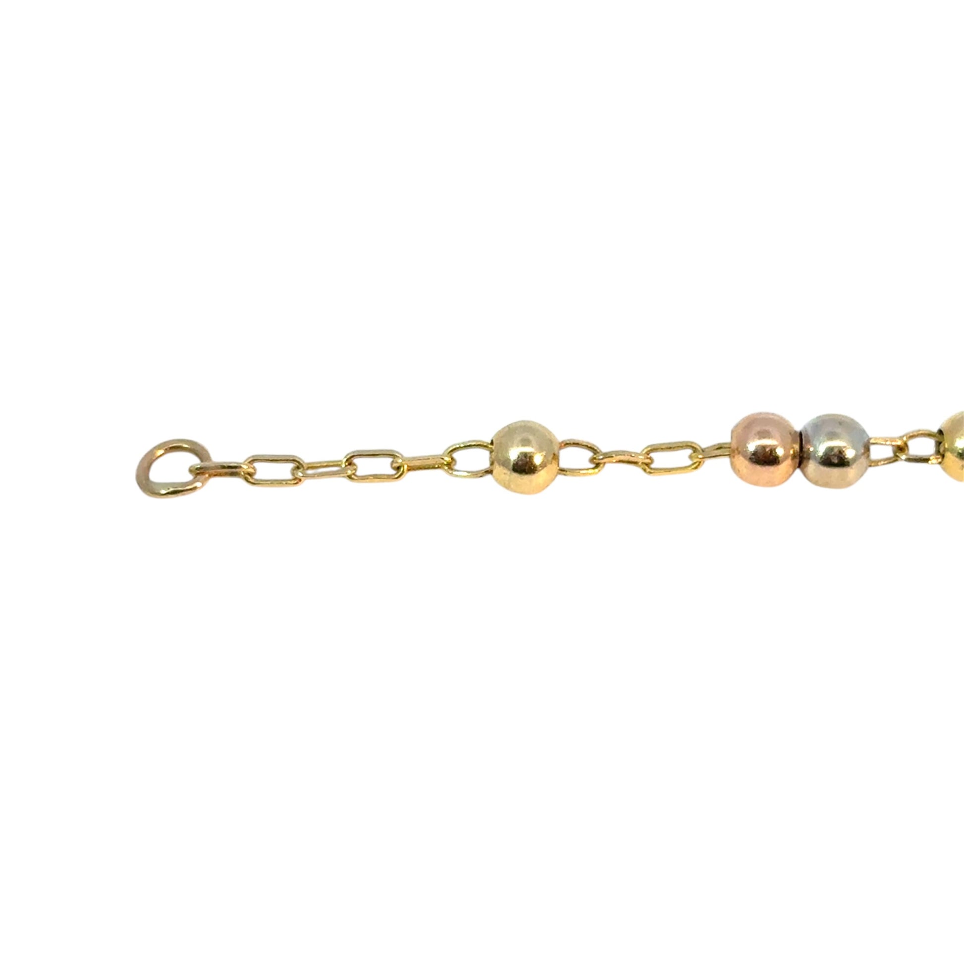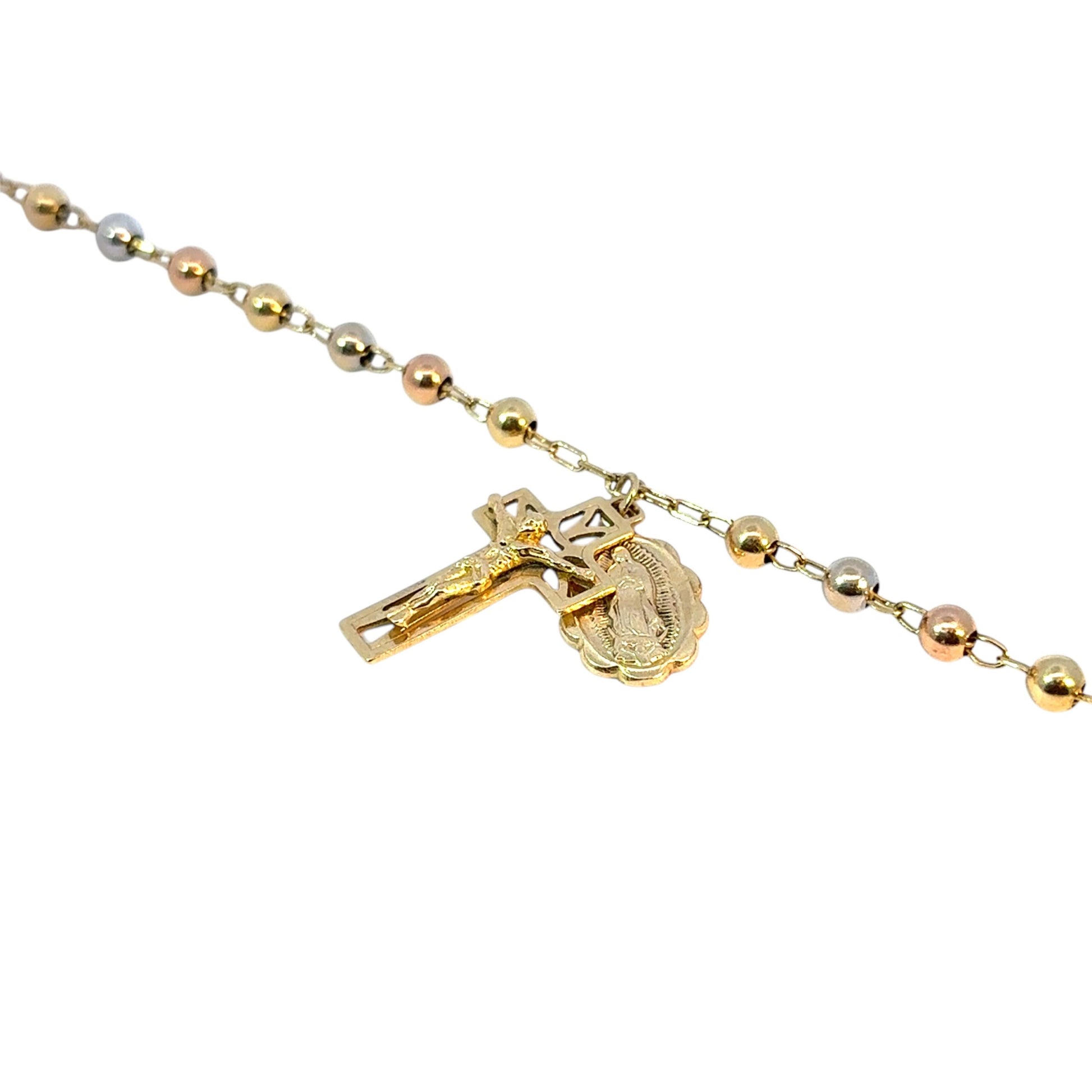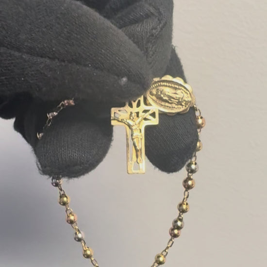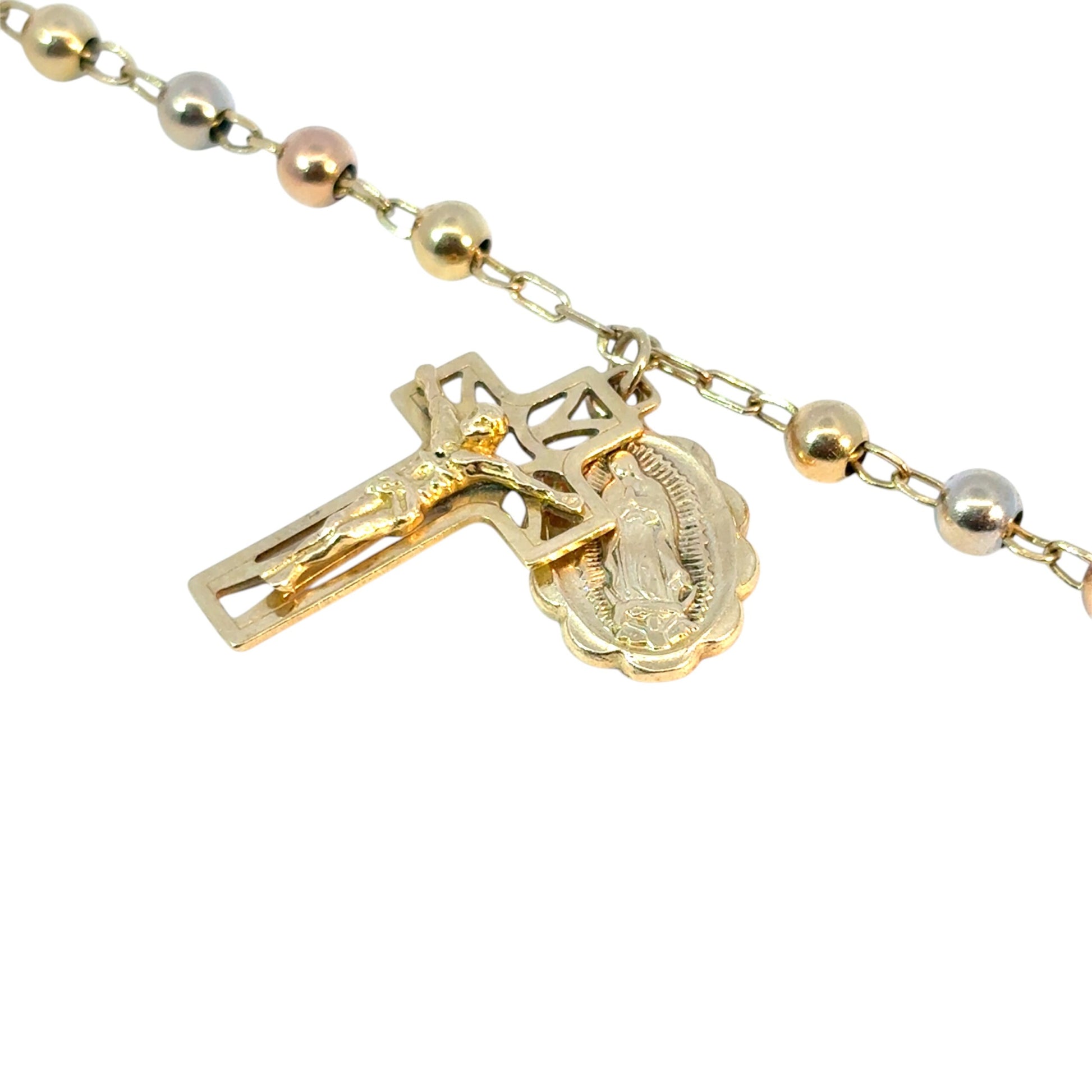 Vintage 14k Yellow Gold Rosary Bead Bracelet with Cross Jesus Pendant and Oval Mother of Mary Pendant